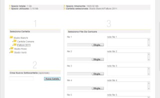 Upload dei fileDa qui si possono creare cartelle e sottocartelle, e inserire fino a 6 file contemporaneamente nella stessa cartella.Per ogni file possono essere aggiunte delle note che specificano il contenuto del file.E' possibile inserire uno stesso file anche a tutti i clienti con una sola operazione.